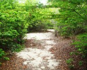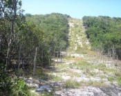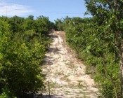 Parte plano e parte em aclive, com pequena vista ao mar na parte superior.