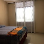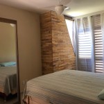 03 quartos, sendo uma suíte casal e dois quartos com cama de casal, todos com ventiladores de teto. A sala tem uma sofa cama. São 02 banheiros no total, sendo um no quarto suíte.