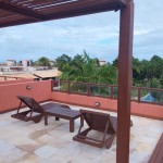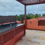 Flat 2 quartos, 1 banheiro, sala, cozinha, e varanda fantástica. No terraço privativo, espaço gourmet, com hidromassagem, deck madeira e pérgola guarda sol. Espaço maravilhoso, para o por do sol e noites de Lua, vista do mar.