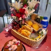 Café da Manhã, Lanche da tarde, Lua de Mel, Frutas, Vinho ou Cholate.