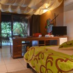 Paradisíaca praia deserta de coqueirais e areias brancas, emoldurada por falésias coloridas. Chalés amplos, com Ar-condicionado, frigobar, TV, banho quente, varanda com rede de frente para o mar.