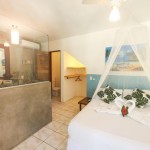 Dispomos de 11 acomodações (casal e familiar até 4 pessoas), 2 com vista para o oceano. Todos possuem ar condicionado Split, ventilador, chuveiro quente, TV, Wi-Fi, Frigobar e um terraço/varanda (térreo) privado com rede vista jardim e/ou piscina.
